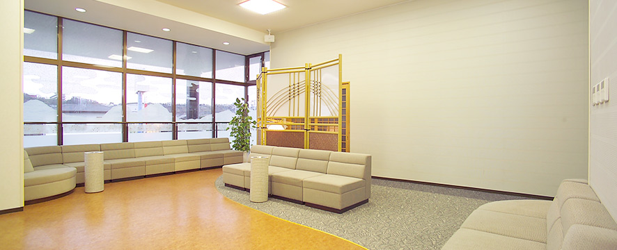 館内には、少人数での家族葬に最適な小ホールと100名様を超えるお葬式に最適な大ホールがあり、ご利用に応じた会場がございます。
